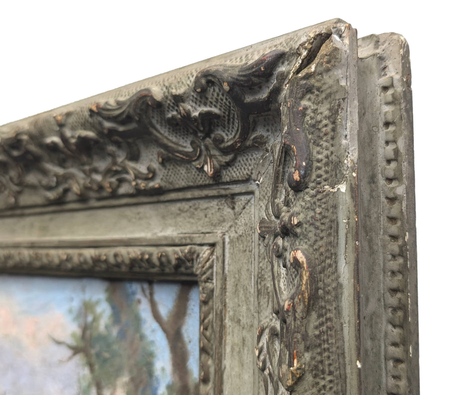 - Materials: Oil on canvas with an antique Beaux-Arts carved wood frame.